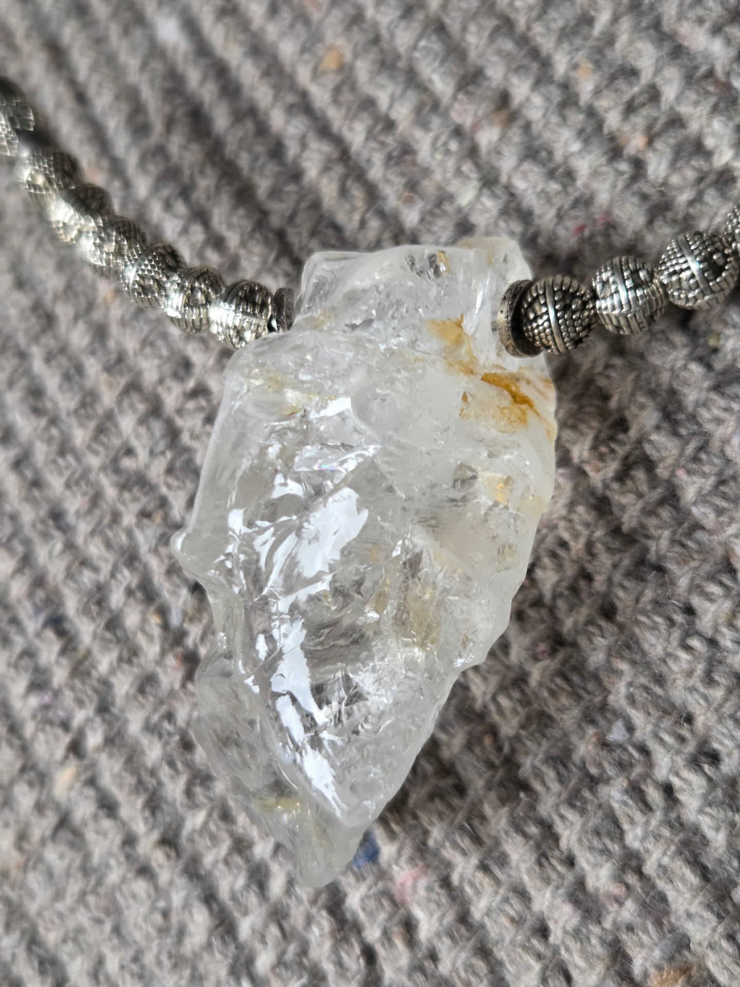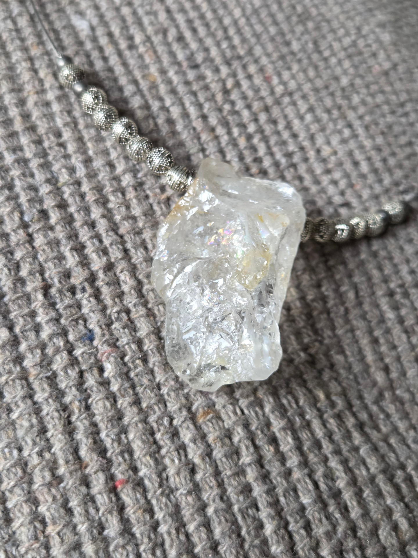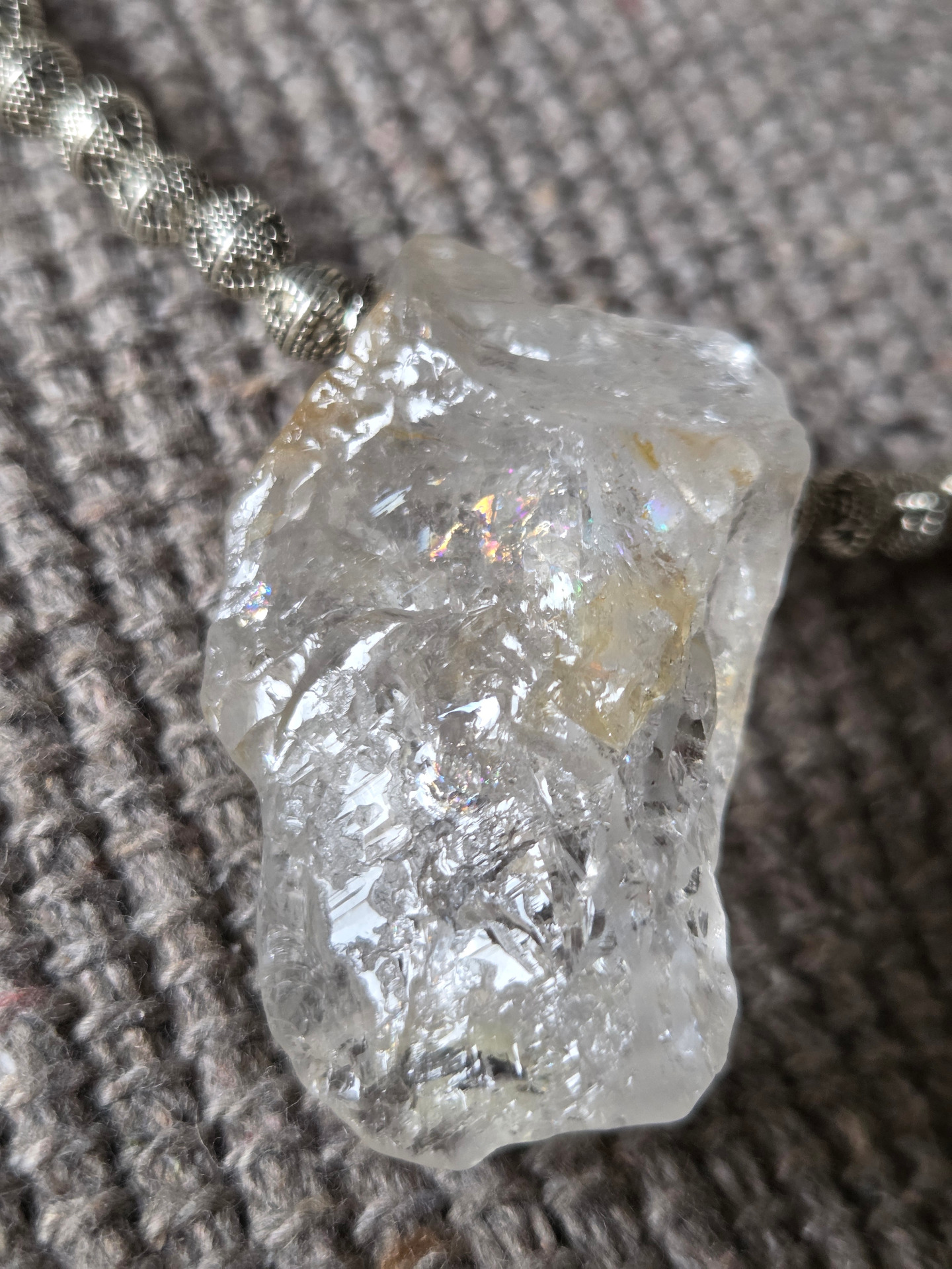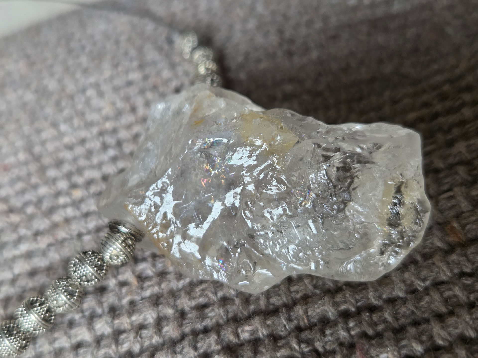 Natúr csiszolatlan csodálatos átlátszó 6cm hegyikristály, szivárványos zárványokkal.